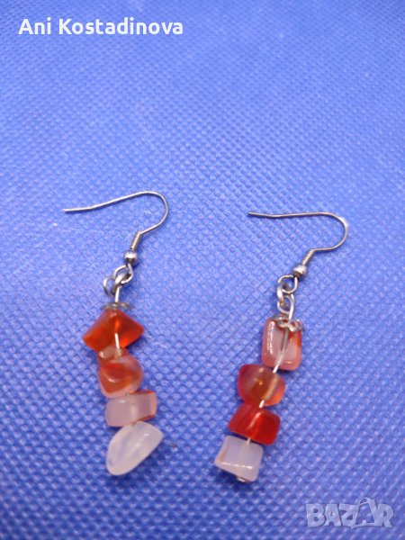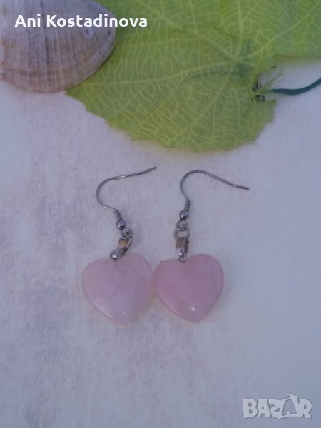 Обеци стомана със сърце розов кварц → Обява 23266348