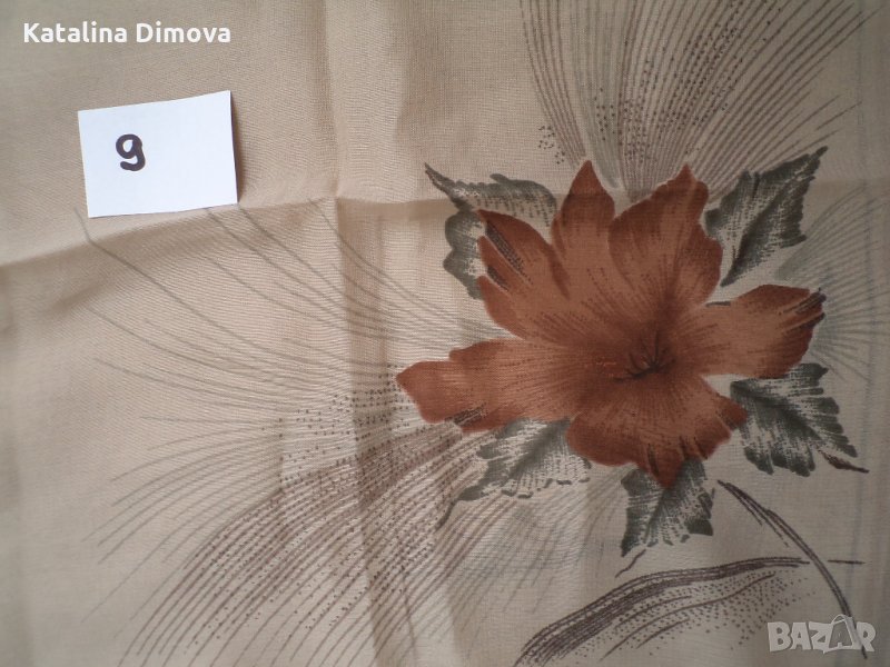 Шал№ 16, разм.90/90 см. цена 5лв;шал№ 15,разм.75/75см, нов,цена5 лв.; шал№14 разм 66/66см, цена 5 лв; шал№ 13 разм.66/66 цена 4 лв, шал№ 12разм.73/73см. цена 5лв.; шал№11 нов, разм.68/68см, цена 5 лв.; шал№10 раз,.68/68см.нов,сцена 5 лв.; шал№9 разм.84/84см цена 5 лв.;шал№8 разм.68/68см нов,цена 5 лв.; шал№7 разм.68/68см. нов, цена 5 лв.
