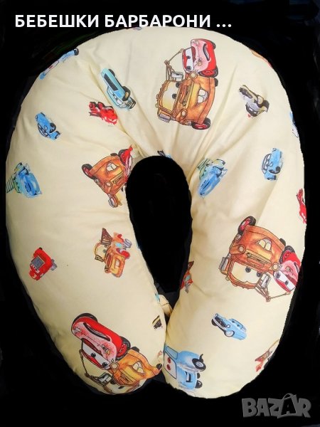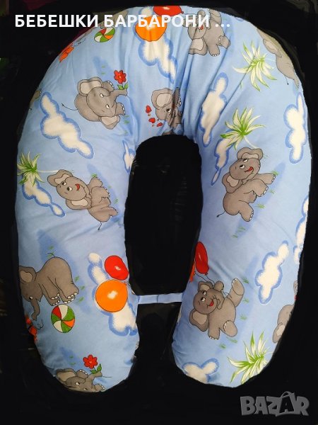 Състои от две части - основна възглавница и калъфка с цип.На калъфката от външната страна има тик-так копче за лесен захват в периода на кърмене. Възглавницата може да се използва и като столче /огъва се извитата част като облегалка/. Удобна е и за деца над 1година. Пълнежа е