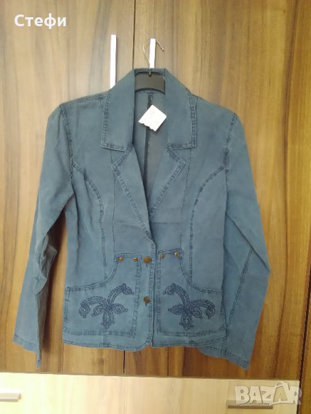 Дамско сако синьо с бродерия 100 % памук. Ново.