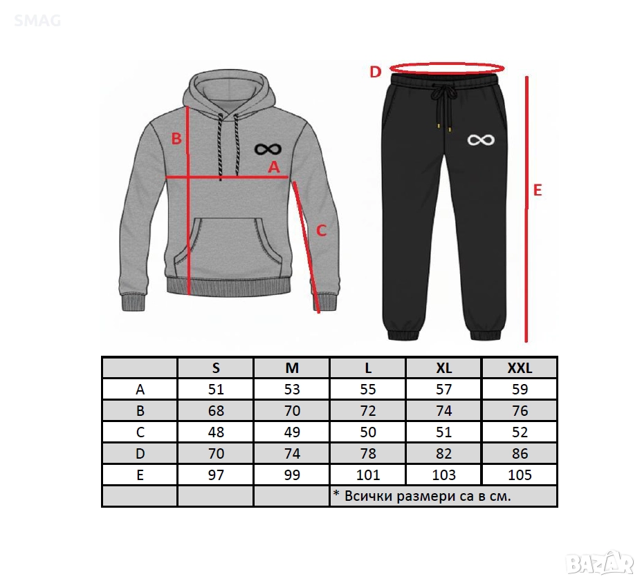 - Размери: S, M, L, XL, XXL