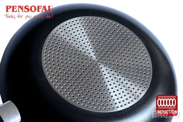 * Специално конусно занитване на дъното на тигана насочващо електромагнитния и естествен пренос на топлина