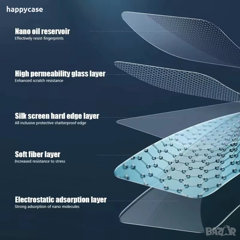 Стъклените протектори са изработени от закалено темперирано стъкло с твърдост 9H. Многократно по-здрави са от обикновен фолио протектор. Предпазва екрана от удари, пукнатини, драскотини, течности, мръсотия и други наранявания. Това е най-сигурния начин да се предпази екрана на устройството и да се избегне скъп ремонт на дисплея. Поставя се елементарно. Веднъж поставен може да се използва докато не се повреди от удар или нещо друго. Не се сменя като фолиото през няколко месеца и не се разлепва по края. Върви комплект със суха и мокра кърпа за почистване на екрана и лепенка за обезпрашаване за да прилепне перфектно протектора.