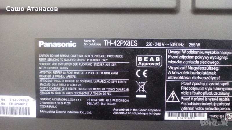 Panasonic TH-42PX8ES с дефектен панел ,LSJB1260-2 ,TNPA4400 ,TNPA4399 ,TNPA4393 ,TNPA4394 → Обява 23287278
