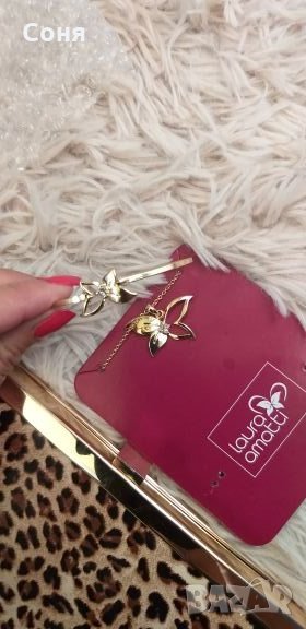 Уникален марков лот.Страхотна чанта която се носи в ръката.Супер красив модел слагана един път.Бижутата са уникални и реалната цена им е 109лв.Цената е за двете.За два закупени артикула поемам доставката поемам доставката