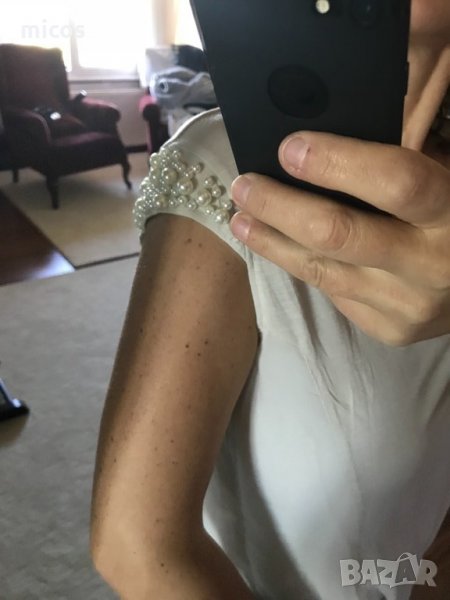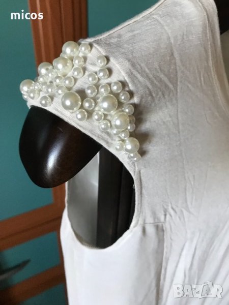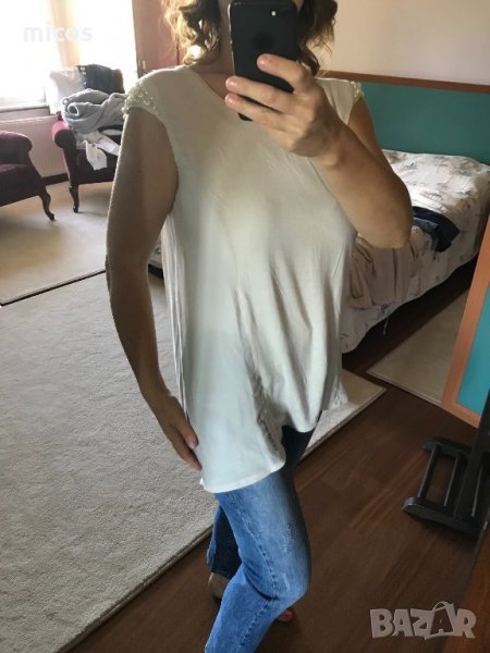 Guess , оригинална, нова блузка, асимитрична, еластична с копринен гръб, перли на ръкавите. Размер М. Закупена за 245 лв