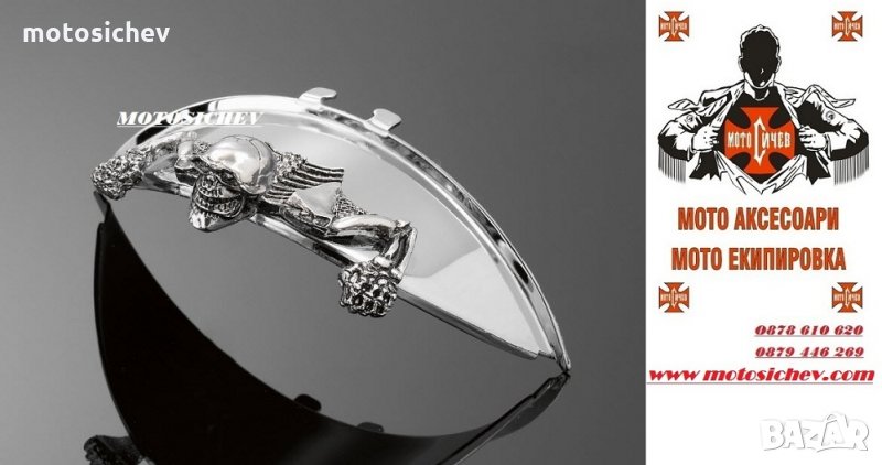 ХРОМИРАН МЕТАЛЕН ОРНАМЕНТ СКЕЛЕТ ЗА ЗАЛЕПВАНЕ НА ГЛАВЕН 7 - ИНЧОВ ФАР ИЛИ ПРЕДЕН КАЛНИК.
