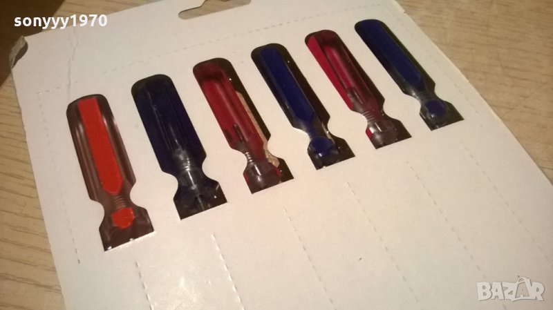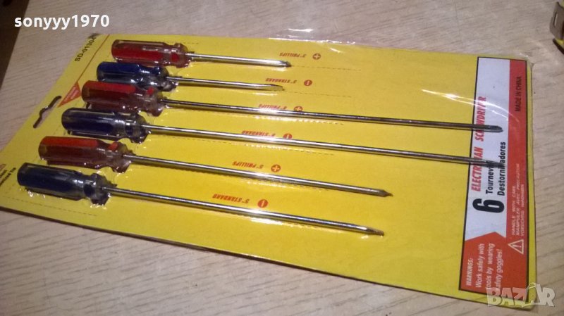 тънки-нови-Комплект от 6 броя прави и кръстати отвертки с размер на дръжките: 3'', 5'' и 8''. Предлагат се в прозрачна PVC опаковка-от днес 28.02.22г пращаме със спиди или еконт с преглед и тест след превод на капаро за куриерската услуга поради зачестили некоректни потребители-поръчки само тук в саита! по телефона и със смс не! краини цени! бартери не правиме! всеки ден нови неща-още 2-3 наши обяви тук