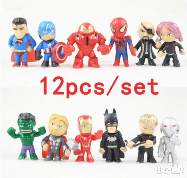 12 малки герои Marvel Avengers America Батман Хълк PVC пластмасови фигурки играчки и украса торта , снимка 1 - Фигурки - 23325268 12 малки герои Marvel Avengers America Батман Хълк PVC пластмасови фигурки играчки и украса торта , снимка 2 - Фигурки - 23325268 1/2