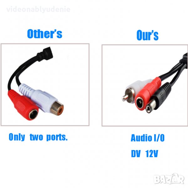 3в1 - Микрофона е с допълнителен кабел с накрайник в който може да влезе захранването, което е предназначено за камерата и след това от самият микрофон има друг кабел с накрайник, който да захрани самата камера. Също така има и Аудио кабел.
