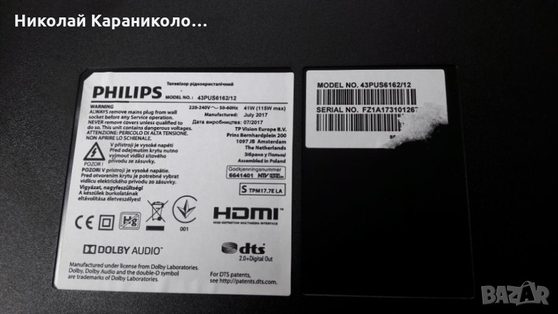 Продавам Power-TPV-715G8620-P01-000-002S и Лед- LBM430M0801-BW-3 от тв PHILIPS 43PUS6162/12