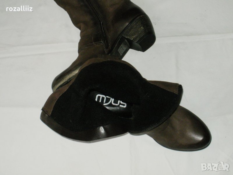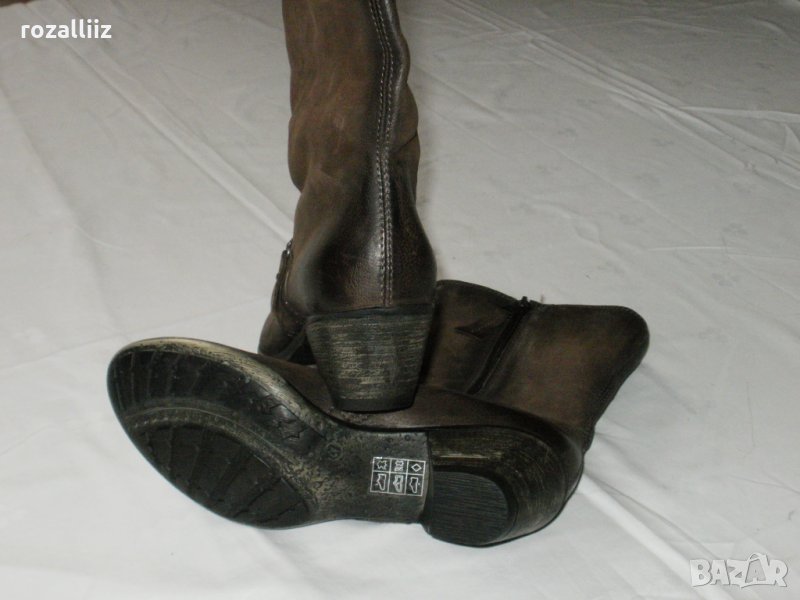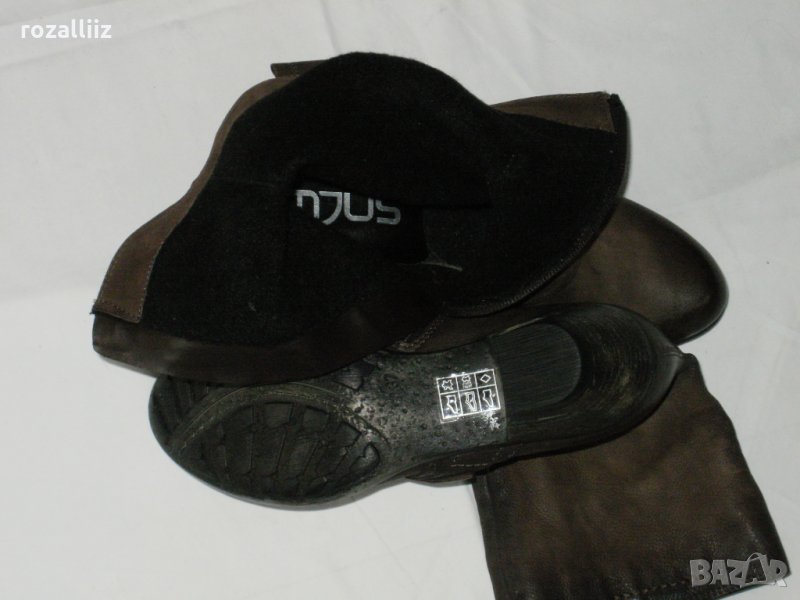 Ботите са нови, по номер са 37 за слаб крак. Изцяло от стабилна, мека естествена кожа. Дължина на стелката-24см. Подметката е цяла, мека не трака. Закопчават се с цип. Цвета е като на снимките, шоколадово кафяво. Отвътре са подплатени с полар и топли. Височина на тока-5см.