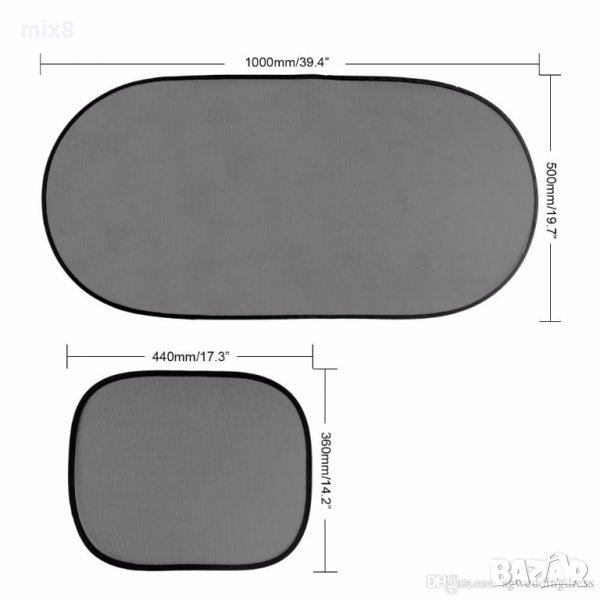 3 броя черни щори за автомобил; 1 брой за задно стъкло и 2 броя за страничните стъкла на автомобила.