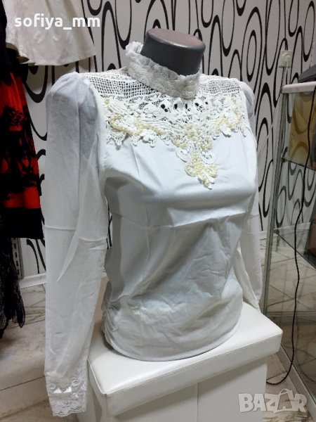 Дамска блуза с перли и дантела, снимка 1 - Блузи с дълъг ръкав и пуловери - 23355360 Дамска блуза с перли и дантела, снимка 2 - Блузи с дълъг ръкав и пуловери - 23355360 Дамска блуза с перли и дантела, снимка 3 - Блузи с дълъг ръкав и пуловери - 23355360 1/3