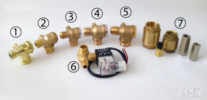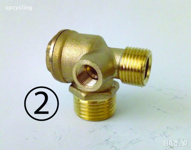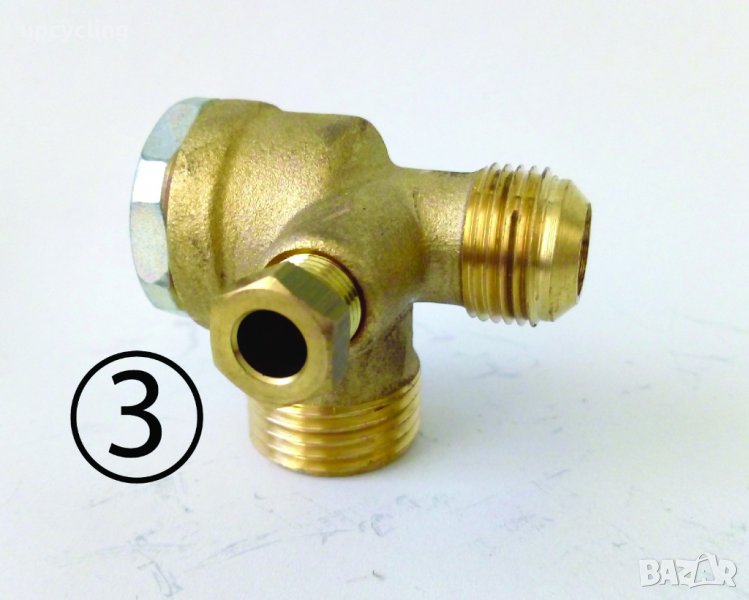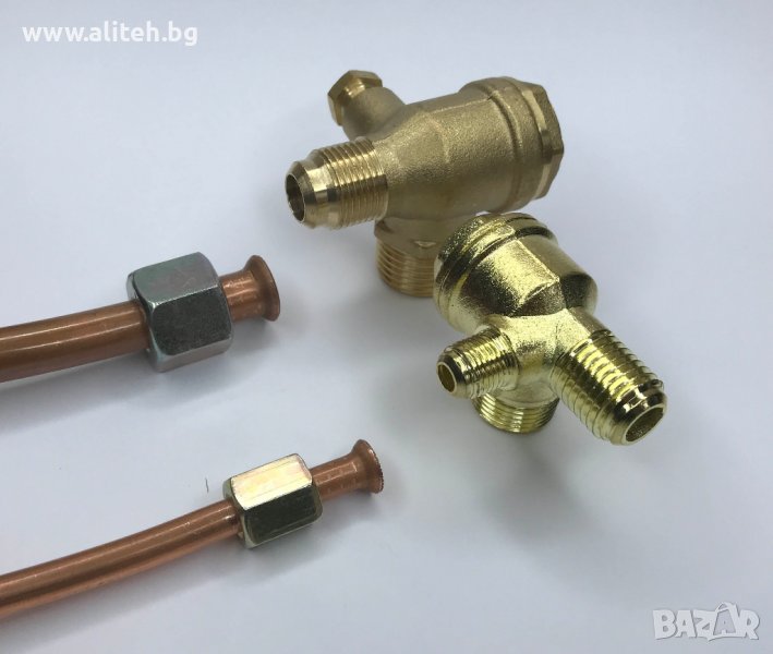 2. Резба към бутилката 1/2, към компресорната глава 3/8. Изход за разтоварване 1/8Ж. Месинг 7,98€ - 15,60 лв/бр