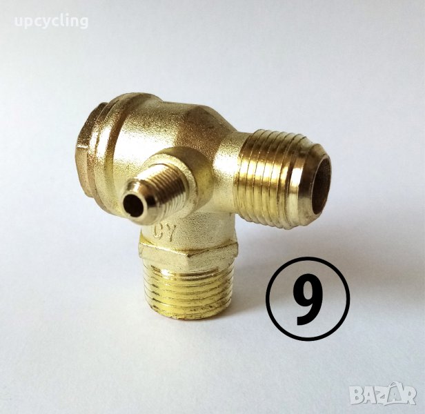 9. Резба към бутилката 1/2, към компресорната глава 3/4 SАЕ-16 (19мм). Изход за разтоварване 2/5. Материал: Месинг-11,04€ - 21,60 лв/бр