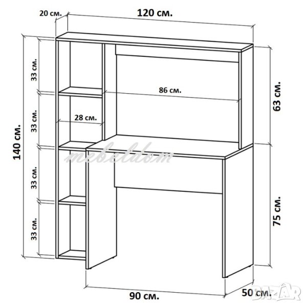 Бюро 120/50см. с етажерен модул(код-1038)