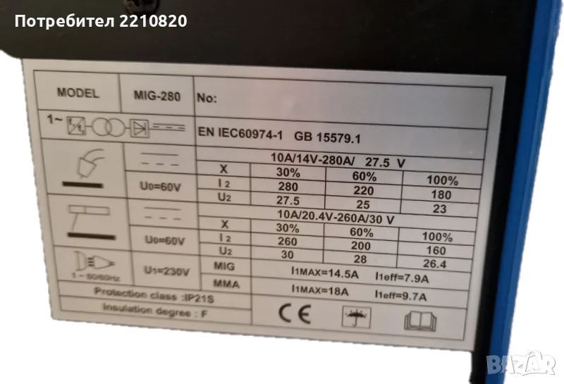 Телоподаващо - МИГ 280 ампера