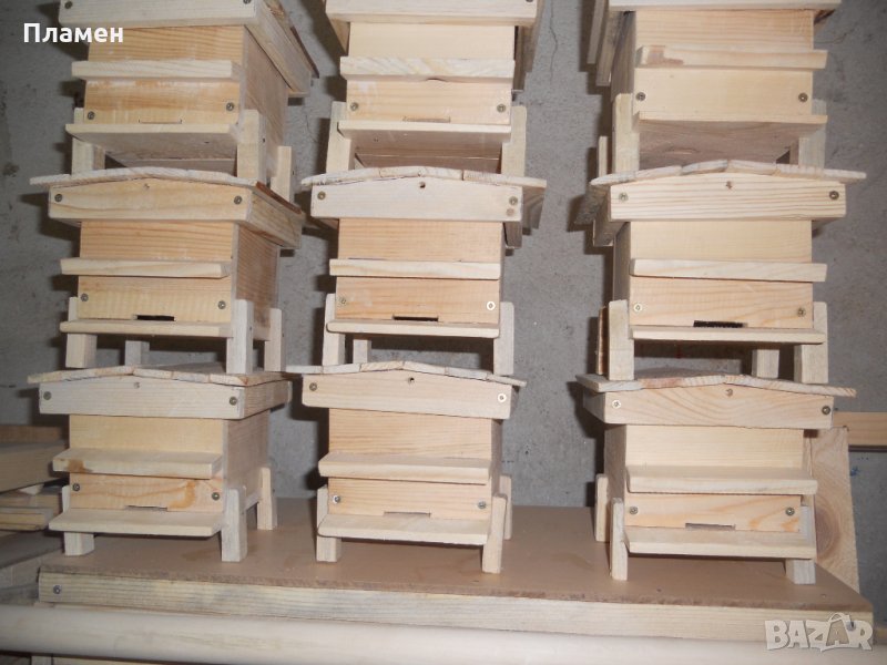.Кошерчетата са с различни размери за бурканче от детско пюре буркан от 380 гр. и буркан от 680 гр.Цената им е съответно 10 .15 и 20 лева за брой.При желание да се постави буркан с мед цената е с 3. 5 или 15 лева по висока зависи от размера на буркана.Кошера на снимката е ДБ10 с мрежесто дъно което е като чекмедже цена 150 лева.