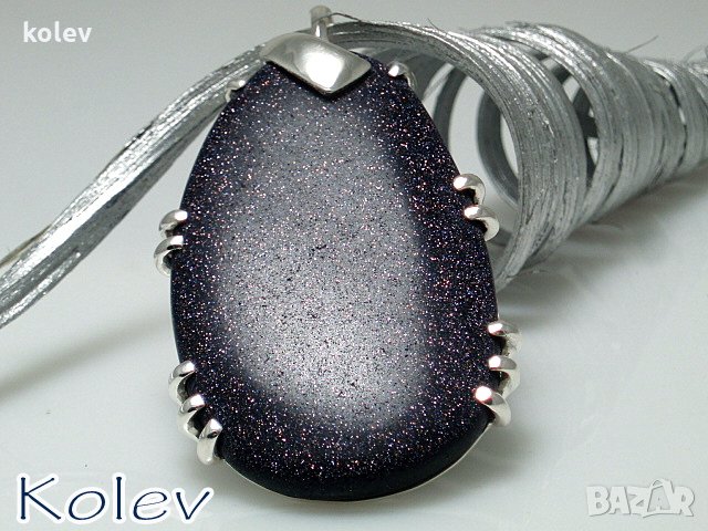 медальон от СИН АВАНТЮРИН В СРЕБЪРЕН ОБКОВ
