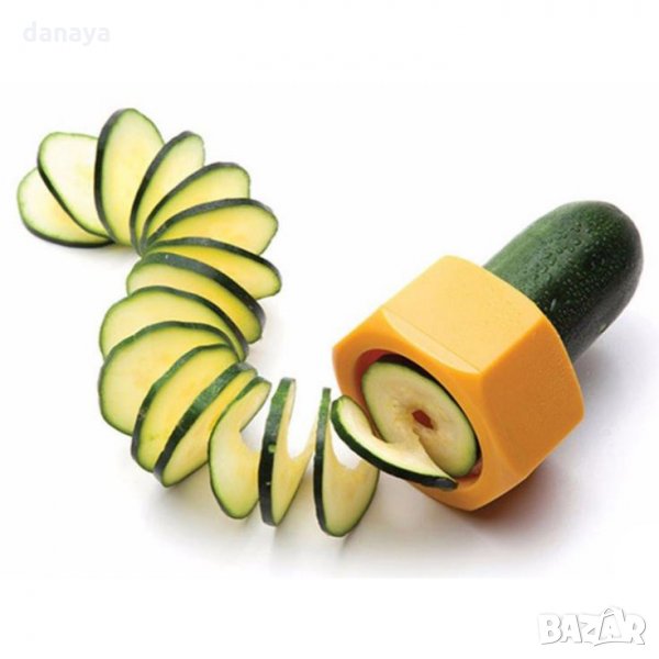 ренде за спирали от краставици, тиквички, моркови и други зеленчуци. С опростена конструкция, удобна, безопасна и лесна за употреба. Компактен прибор, орстрилка за зеленчуци, с който лесно ще направите дълги спирали от краставици или друг зеленчук или плод. Практичен прибор за приготвяне на красива декорация на салати и ястия.