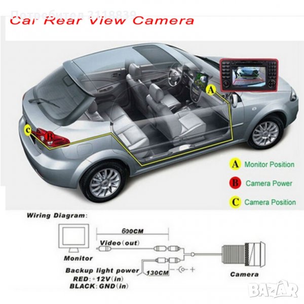 Включването на заден ход захранва камерата и тя активира свързания към нея монитор.