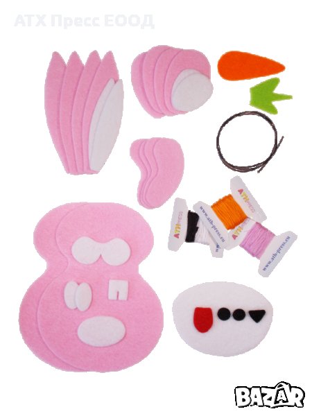 Зайче-розово-комплект за шиене от филц → Обява 23433792