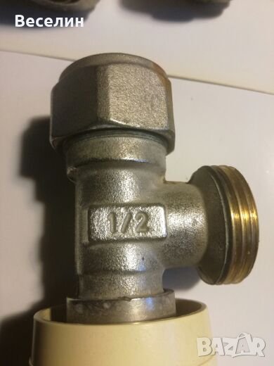 Продавам кранове за парно. Цената на крановете от първата снимка е 4 евро за брой. Фитингите от 4 снимка са нови, с цена - 0,5 евро за брой. Това са капачки за термоглави - 12 бр.
