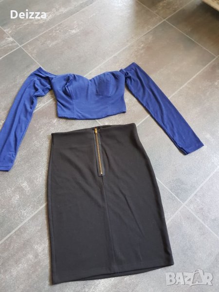 Синьо бюстие с дълги ръкави