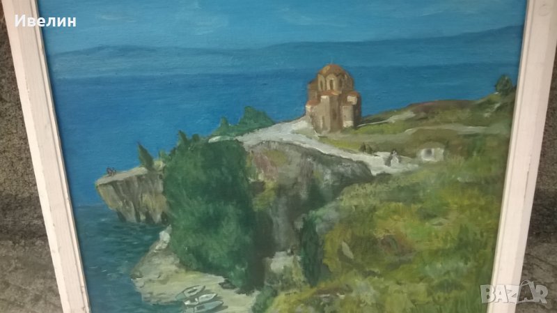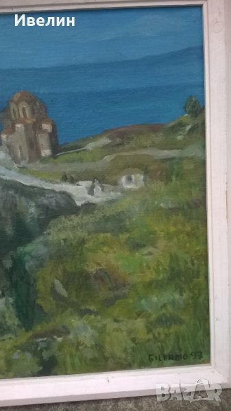 картина-пейзаж.масло на шперплат,подписана в дървена рамка с размери 60см/71см,вътрешни 52см/61см.