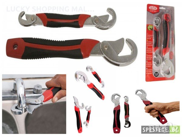 Два универсални ключове, които се адаптират към всички видове болтове и гайки. Само с едно движение на ръката! Ефективно, практично, малко тегло.Идеален за ВиК, дърводелство, механична и работа в градината.