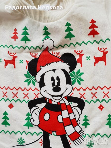 Страхотен коледен комплект за момче - блузка с апликация на Мики Маус и панталонче. Лека вата. Българско производство. Налични размери - 68 см.