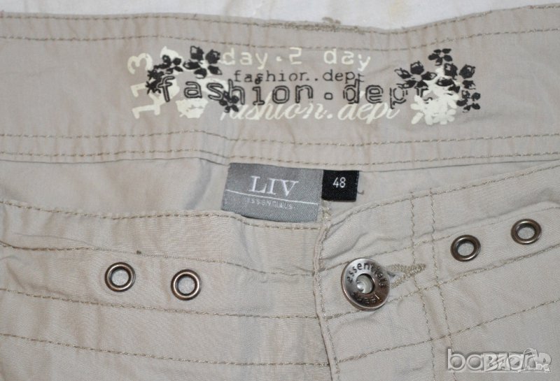 LIV Essentials дамски бежов панталон летен 3/4 100% памук размер 48 → Обява 23444822