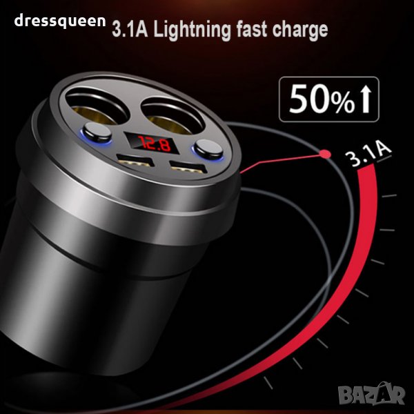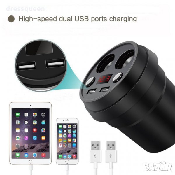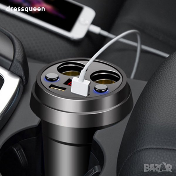 1917 3в1 волтметър, разклонител и зарядно за кола в чашка