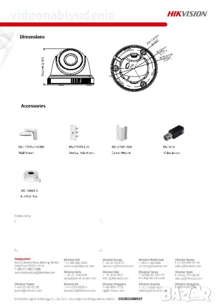 Камерата е водоустойчива и е подходяща и за външен монтаж!