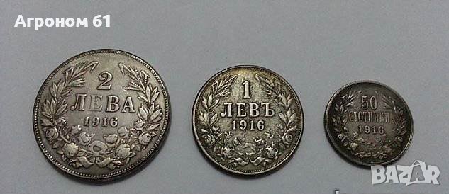 Лот изключително редки монети от 50 ст, 1 лв. и 2 лв. от 1916 г.