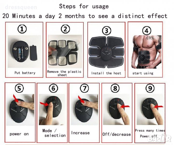 Електростимулаторът е подходящ, както за мъже, така и за жени. Вие само избирате къде да го поставите - според проблемните зони ръце, крака и корем. Сбъднете мечтата си да имате плочки на корема и ръцете Ви да бъдат стегнати.