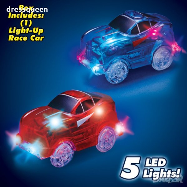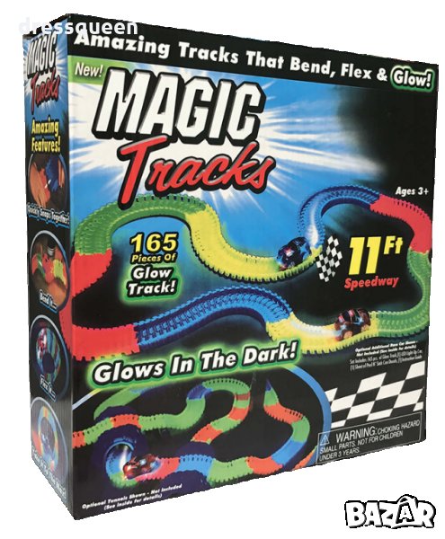 лесно се напасват едно към друго, за да сътвориш най-яката писта във всякакви цветови комбинации. Така всеки път пистата ще е различна и няма как да ти омръзне - в различна форма и различни цветове. Освен това пистата е фосфоресцентна и отразява всякаква светлина - за истинско светлинно шоу!