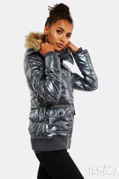 Много топло и леко метално-сиво яке с качулка (може да я махне). Размер 38(М).