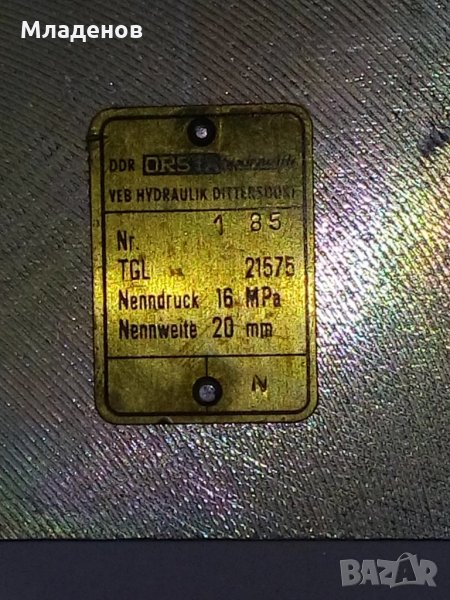 Кран сферичен стоманен. DN 20 /PN 160 , краищата на резба М 27 × 2 , за хидравлични системи , ORSTA , DDR .