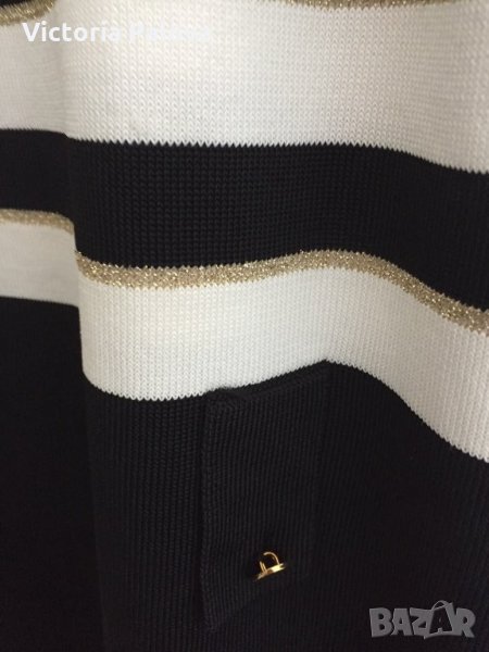 Красива къса рокля , стегната приятна материя, райетата се редят с едно тънко “златно” такова, което придава на роклята елегантност и шик.