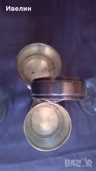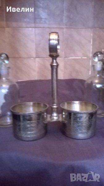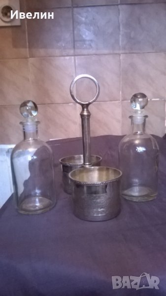 стар оливерник арт деко.висок е 20см,широк 16см,отвор за стъклениците 7,5см.шишетата са високи 16см.