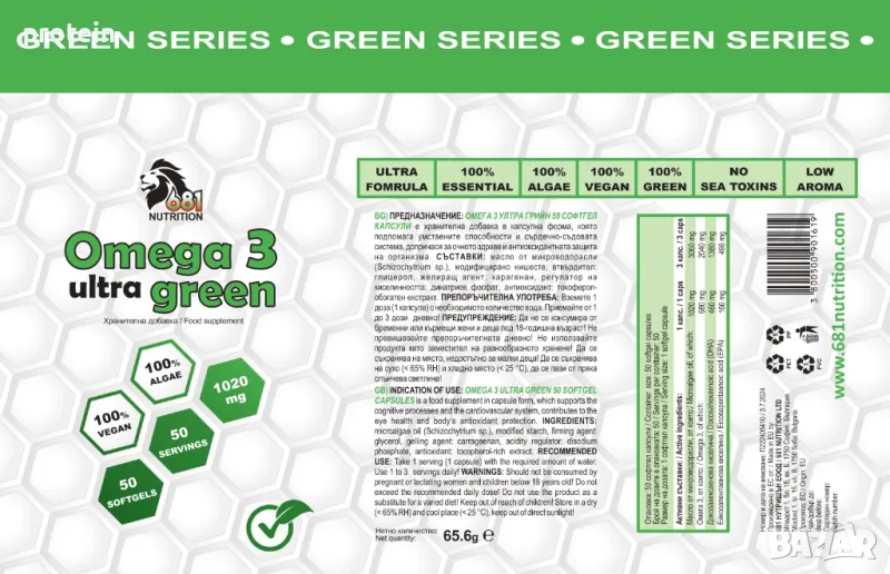 681 НУТРИШЪН ОМЕГА 3 УЛТРА ГРИЙН е хранителна добавка