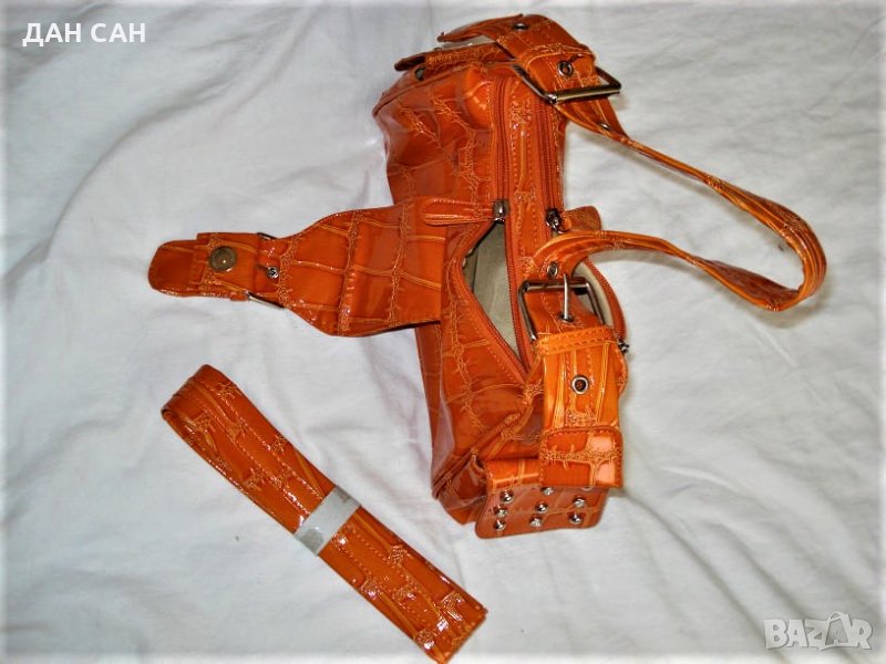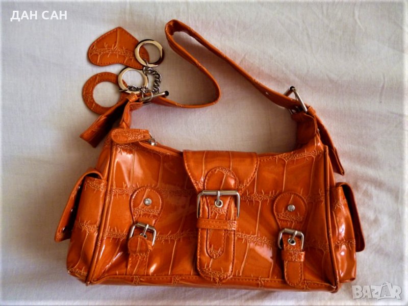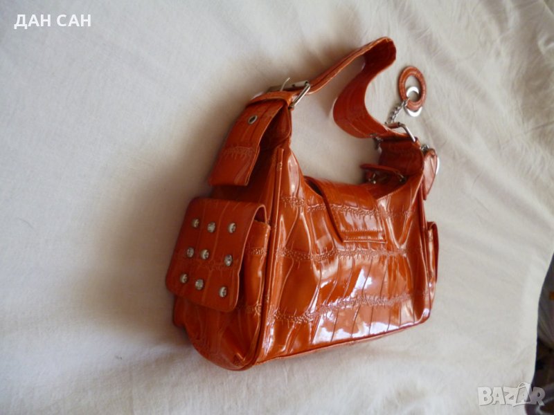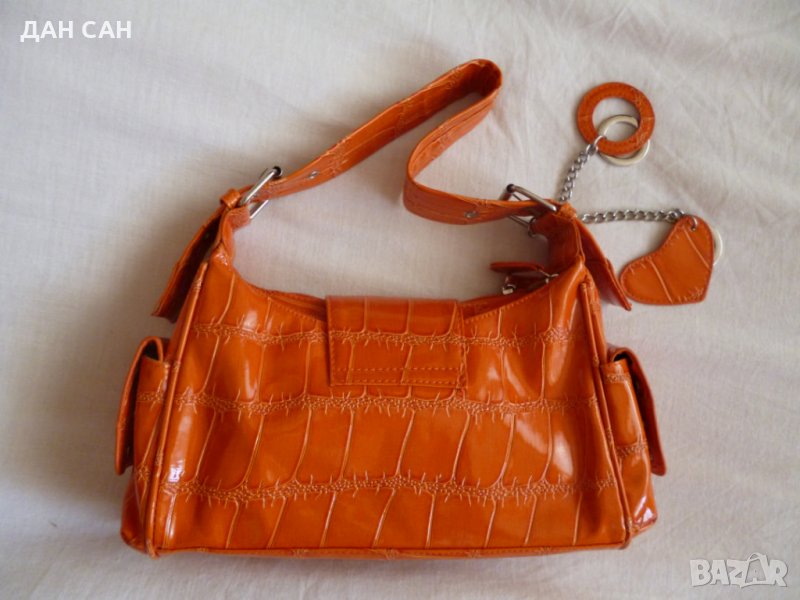 НОВА Дамска чанта Оранж с лак релеф за през рамо - Внос → Обява 23487394