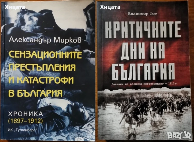 Средновековна християнска Европа - Изток и Запад: Ценности, традиции, общуване, Текст и на български, френски, немски, руски, английски, сръбски, Васил Гюзелев, Анисава Милтенова, ИК Гутенберг, 2002г.736стр. - 380лв. Сензационните престъпления и катастрофи в България.Хроника 1897-1912, Александър Мирков,Гутенберг,2009г.312стр. - 85лв Критичните дни на България,Владимир Сис,Сдружение "Българска история",2019г.204стр. - 15лв Истинската история на България.Началото,Сиела,2008г.240стр.Отлична! - 80лв История на България през погледа на историците:Иван Божилов, Вера Мутафчиева,Константин Косев,Андрей Пантев,Стойчо Грънчаров,Изд.Христо Ботев,1993г.760стр. - 60лв Нова Европа,Любенъ Мелнишки,Хемусъ, 1942г.256стр.Изключително запазена! - 70лв