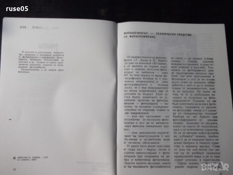 Книга "Работа с фотоапарата - Анастас Ташев" - 108 стр. → Обява 23490663