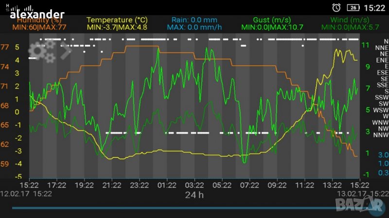 населено място. По всяко време и от всяко място може да виждате метеоданните в реално време , както и техния