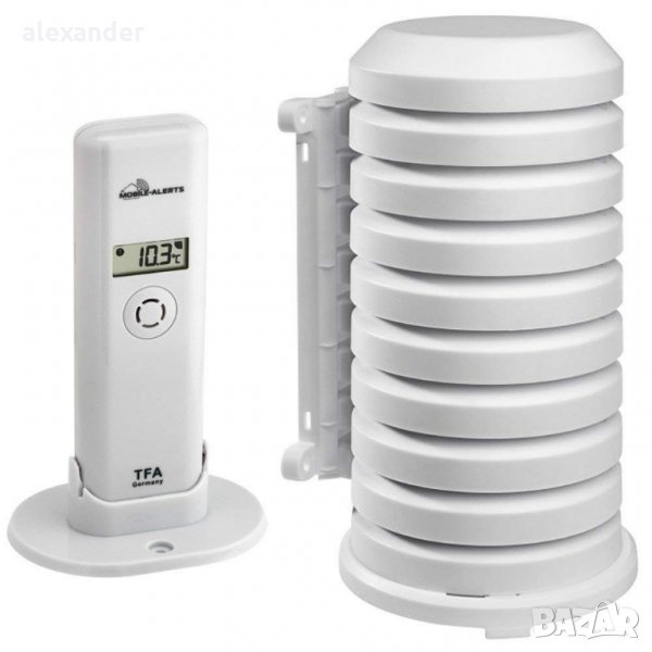 включва приемник (Gateway), сензор за температура и влажност на въздуха, сензор