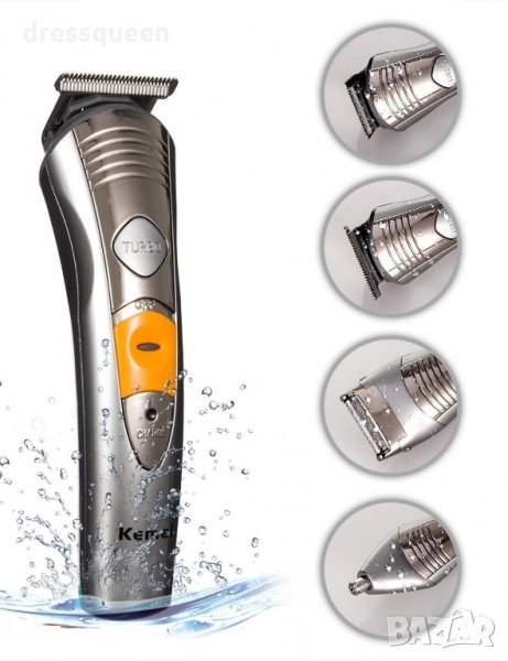 Безжична машинка за подстригване с приставка за бръснене,приставка тример, приставка тример за нос и приставка за бакенбарди Kemei 580