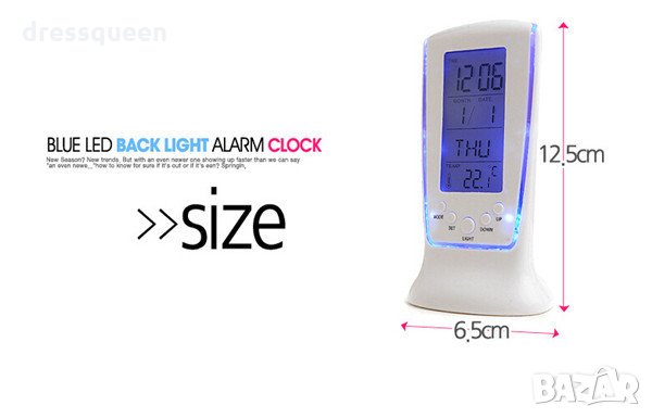 • SC-510 • LCD Дигитален часовник с термометър за бюро • Показва - часа, датата, ден от седмицата, температура • LCD дисплей • Синя задна светлина на дисплея • С аларма • Размери: 80x130x60 mm • Работи с 3 AAA батерия - не са включена в комплекта